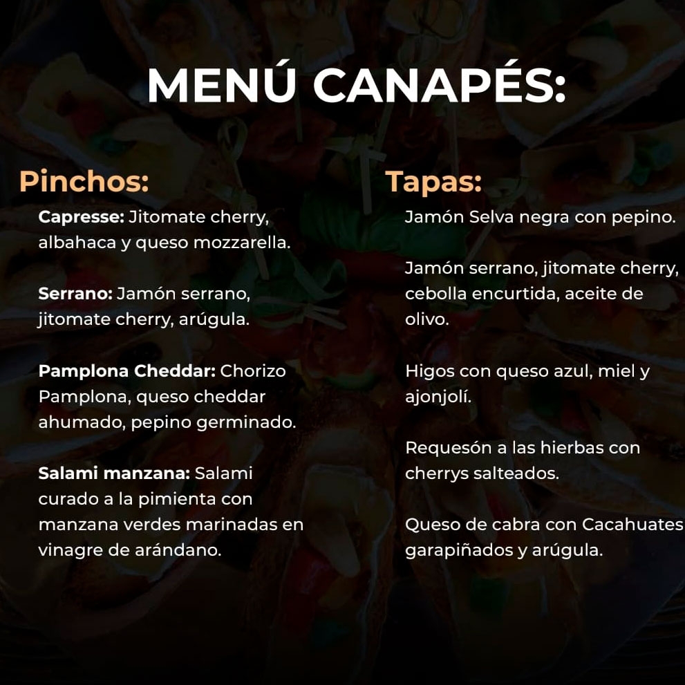 Recomendamos elegir 5 variedades de canapés para ofrecer una experiencia equilibrada y dinámica.